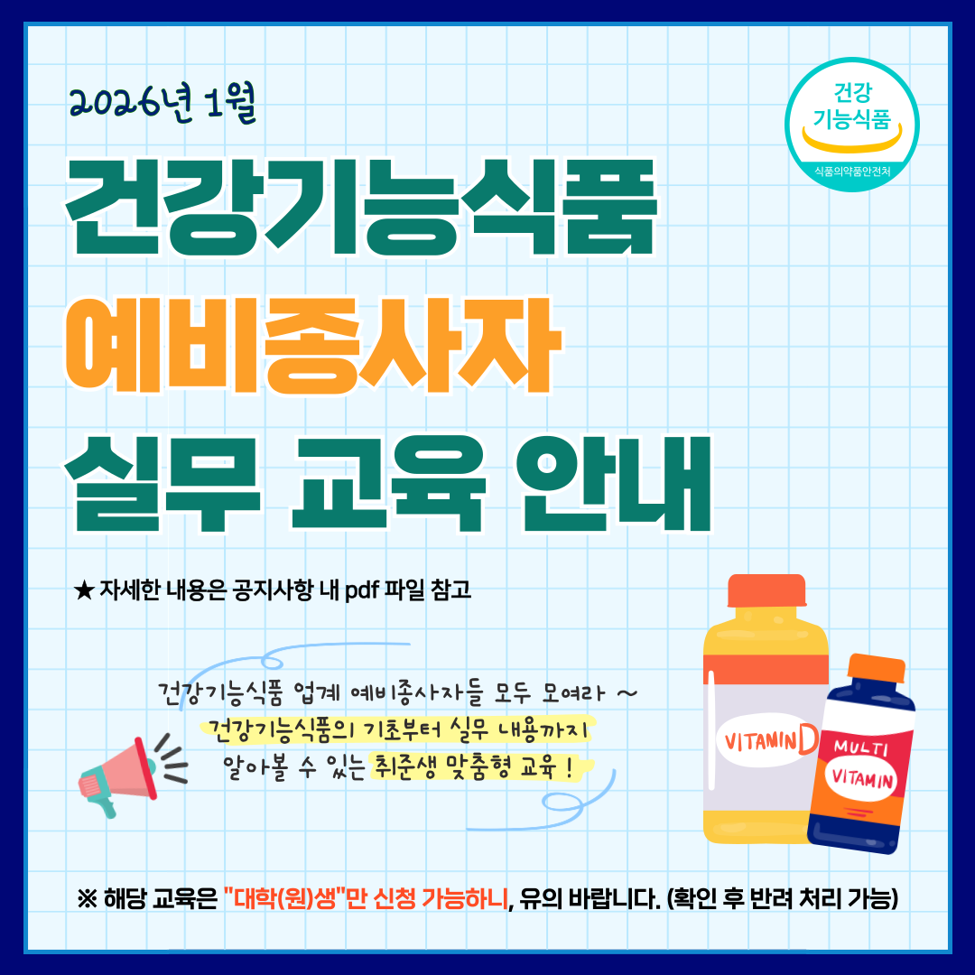 2026년 1월 건강기능식품 예비종사자 실무 교육 안내
